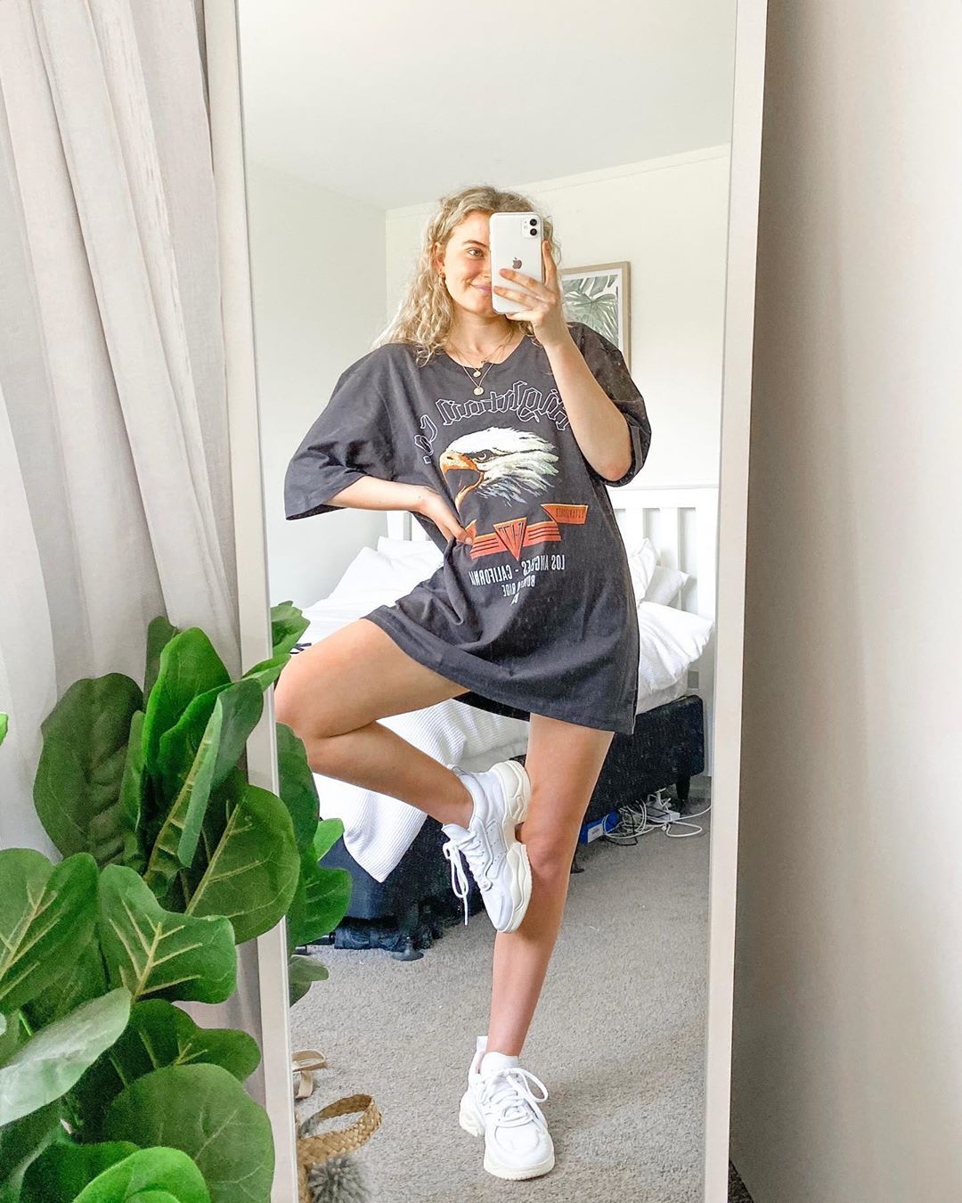 So obsessed with the style, I got it oversized and it looks amazing with high-waisted jeans. The print is gorgeous, it instantly gives a street look.